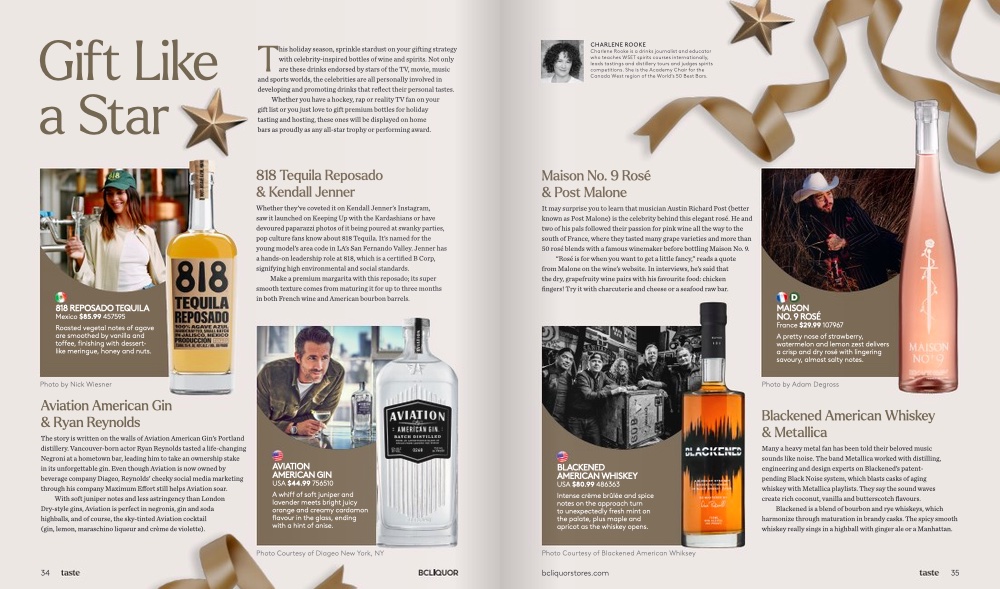 For the winter issue of the BC Liquor Stores magazine TASTE I rounded up some of the most giftable celebrity-endorsed and -founded spirits and wine bottlings.