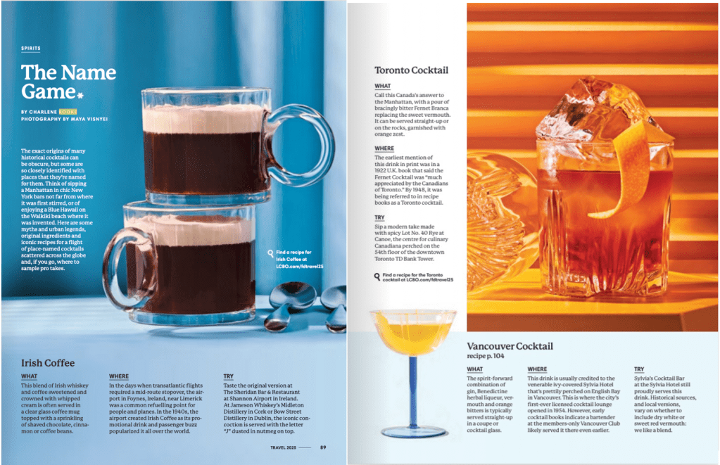Sip and sing along to the name game: here are the stories behind how these cocktails got their names, and the locations that inspired them! From Food & Drink‘s first travel issue…
