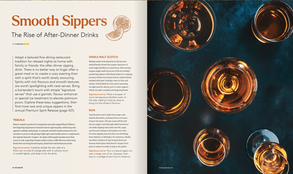 I rounded up some cozy, fall-friendly options for post-prandial sippers in the autumn issue of TASTE, the BC Liquor Stores magazine.