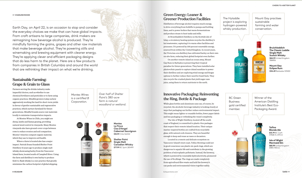 Embrace these sustainable spirits from do-good companies, just in time for Earth Day 2026, in the Spring issue of BC Liquor Stores Taste magazine.